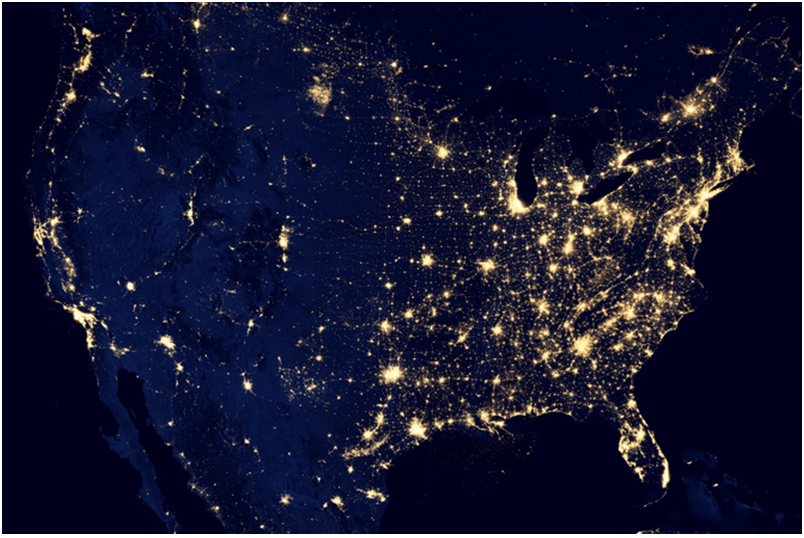 It’s hard to find dark, even at night. | Photo Credit: NASA Earth Observatory, CC BY